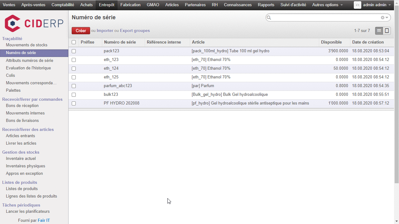 Le concept de traçabilité est disponible tout au long de la chaîne dans CID ERP. Il accompagne les opérations logistiques et de fabrication de manière intuitive tout en offrant une fonctionnalité puissante et complète.